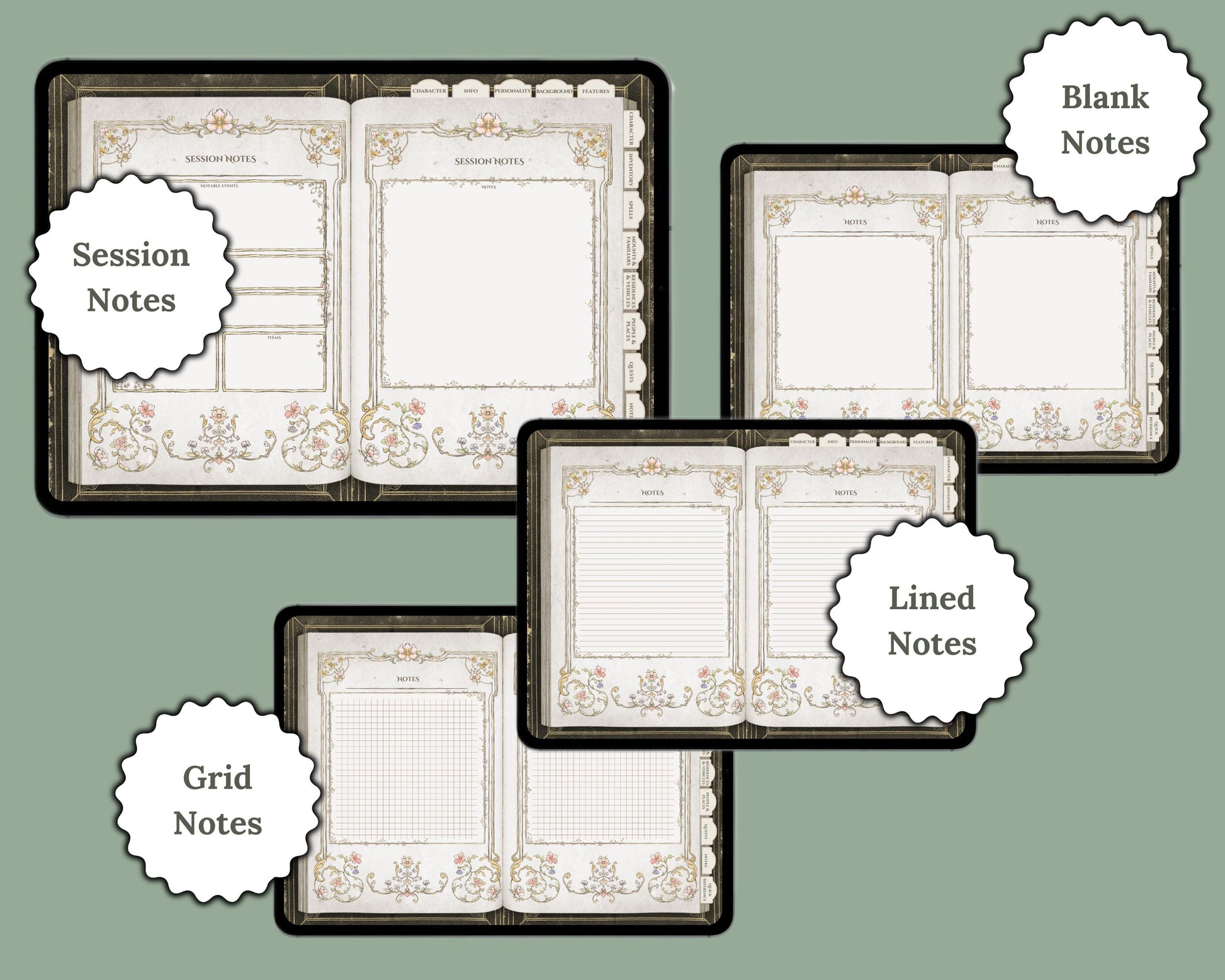 -Fully Hyperlinked & Form Fillable -Session Notes: Includes 72 sessions of notes to chronicle your adventures, plus 24 pages each of blank, lined, and grid notes for flexibility and creativity.