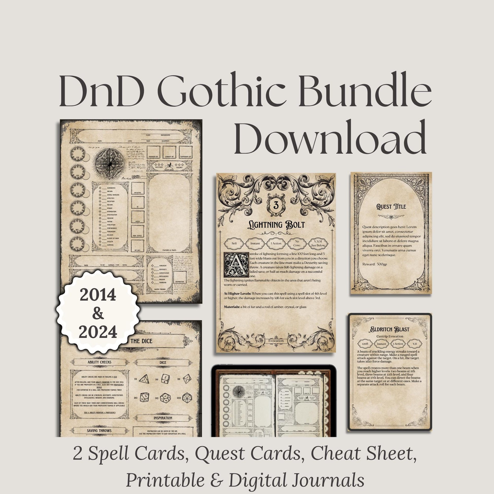 Step into the dark elegance of gothic style with our Gothic DnD Bundle, designed to enhance your Dungeons and Dragons experience. This bundle is perfect for players and dungeon masters looking to streamline gameplay and immerse themselves in a beautifully themed adventure. Featuring everything from spell cards to character journals, this collection has all the tools you need to bring your campaigns to life with a gothic flair.