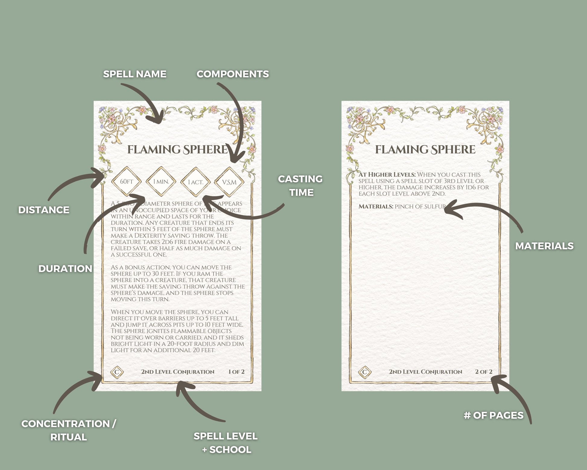 Elevate your Dungeons and Dragons games with our Floral DnD Spell Cards Bundle!