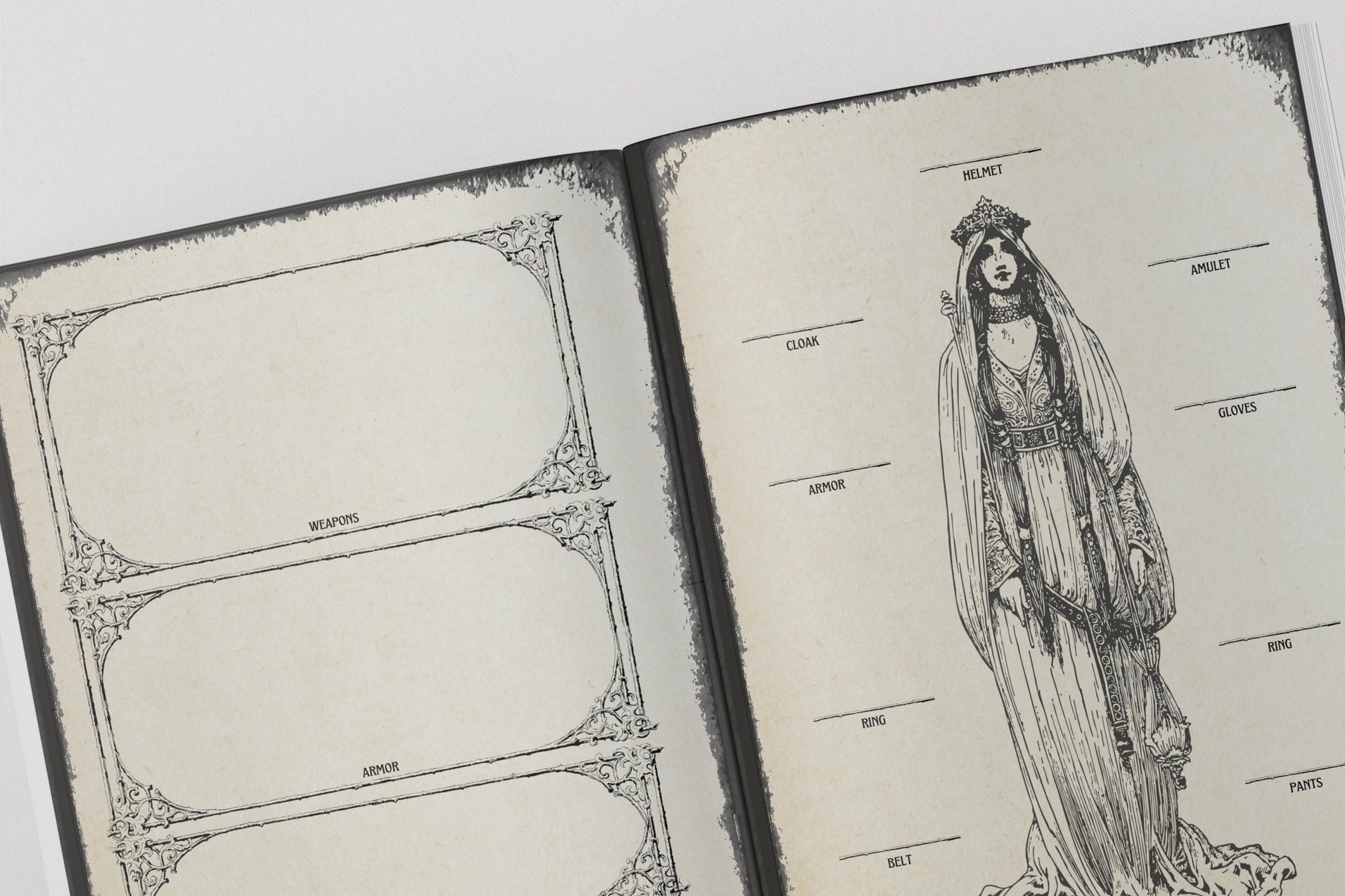 This gothic-themed Paperback Dungeons & Dragons journal is printed full color on durable 90lb paper and includes 90 pages for all of your character notes, spells, quests, and more. Perfect for any player looking to stay organized while adding a touch of style to their game!