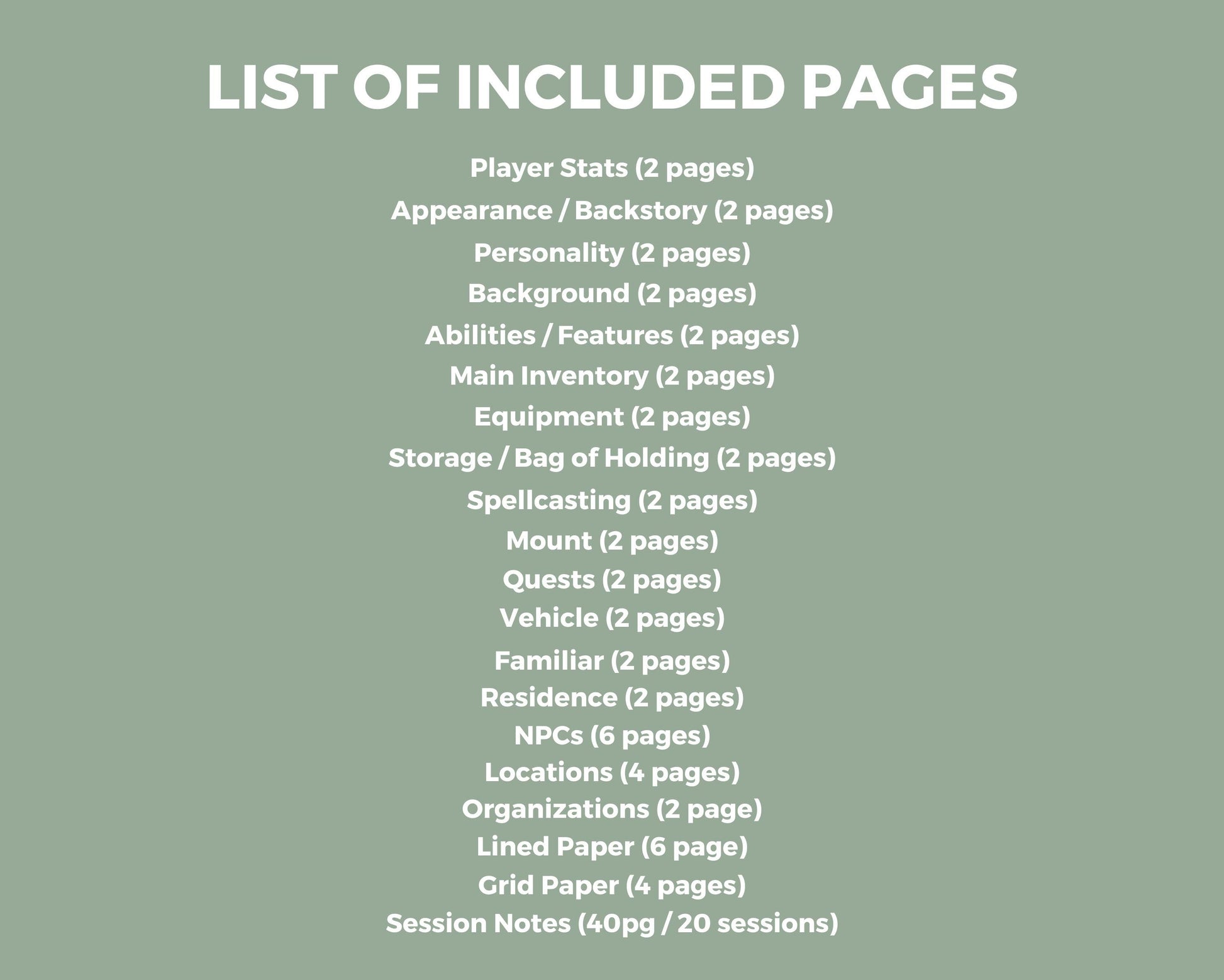 -Session Notes (40pg / 20 sessions)